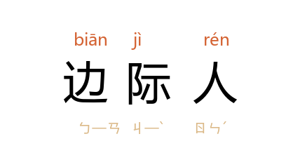 ⒈ 未能充分参与任何团体或同时参与对立的两个以上的团体,而行为无所适从的人。如移民、混血人等,由于受到多种文化的冲击,因而价值观念和行为方式都无法归属于任何一方。