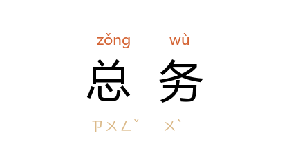 ⒊ 负责总管事务的人。如:「他在学校当总务。」