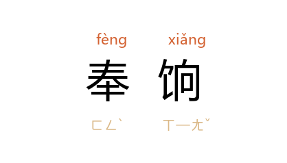 ⒈ 俸饷。奉,通“俸”。