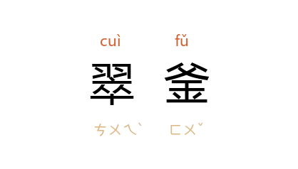 引唐 杜甫 《丽人行》:“紫駞之峯出翠釜,水精之盘行素鳞。”元 本 高明 《琵琶记·新进士宴杏园》:“络绎八珍送,无非翠釜驼峰。”《剪灯新话·龙堂灵会录》:“忙呼玉女捧牙盘,催唤神娥调翠釜。”