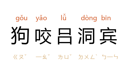 引《红楼梦·第二五回》:「彩霞咬著嘴唇,向贾环头上戳了一指头,说道:『没良心的!狗咬吕洞宾──不识好人心。』」