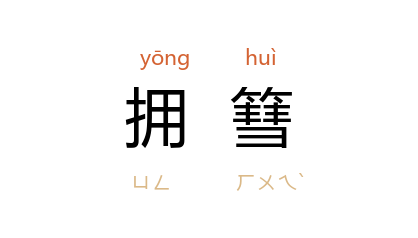 ⒈ 亦作“拥彗”。执帚。帚用以扫除清道,古人迎候宾客,常拥篲以示敬意。引申为扫清障碍。