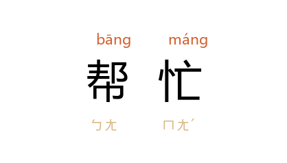 引《红楼梦》第四五回:“宝玉 每日便在 惜春 那边帮忙。”赵树理 《三里湾·放假》:“玉梅 要他帮忙搬桌子板凳,他便进来帮着搬。”