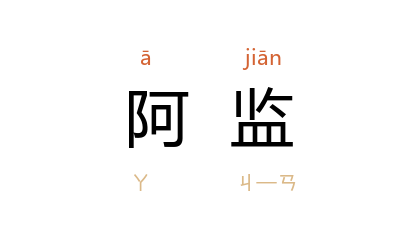 引唐 白居易 《长恨歌》:“梨园子弟白髮新,椒房阿监青蛾老。”前蜀 花蕊夫人 《宫词》之三九:“阿监采菱牵锦缆,月明犹在画船中。”清 顾春 《烛影摇红·听梨园太监陈进朝弹琴》词:“白头阿监抱琴来,未语眉先蹙。”