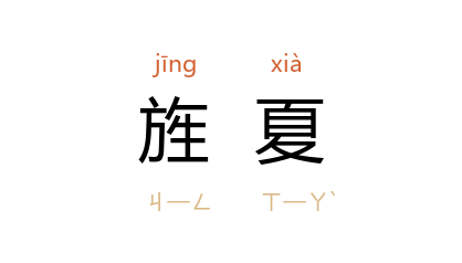 引《左传·襄公十年》:「舞师题以旌夏,晋侯惧而退入于房。」汉·马融〈广成颂〉:「建雄虹之旌夏,揭鸣鸢之修橦。」