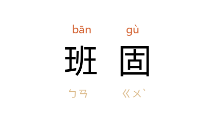 ⒈ (32-92)东汉史学家、文学家。扶风安陵(今陕西咸阳东北)人。父班彪也是史学家。他继承父业,续修《汉书》。又善于作赋,所写《两都赋》为汉赋名篇。公元89年,随大将军窦宪出击匈奴。后窦宪专权被杀,他受牵连,死在狱中。《汉书》中的“八表”和《天文志》由妹班昭续成。