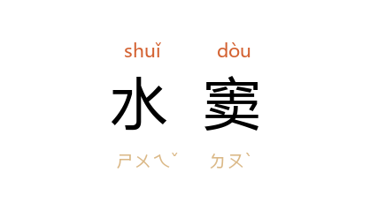 引清 顾炎武 《济南》诗之一:“西来水竇缘 王屋,南去山根接 岱宗。”清 谈迁 《北游录·后纪程》:“自是长隄多水竇,水莹緑异常。”