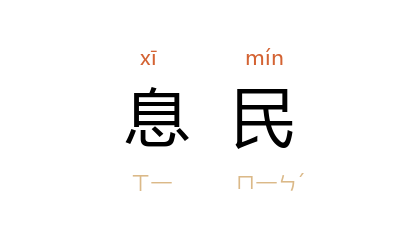 引《左传·隐公七年》:“凡诸侯同盟,於是称名,故薨则赴以名,告终,称嗣也,以继好息民。”汉 贾谊 《过秦论下》:“案土息民,以待其敝。”唐 柳宗元 《非国语下·祀》:“夫祀……自息民以下,咸无足取焉尔。”清 鲁一同 《秦论》:“秦 之强不强於 惠孝 之耕战,而强於 景哀 之息民。”孙中山 《致国民党员书》:“其所主张,以为今之所务,惟在保境息民。”