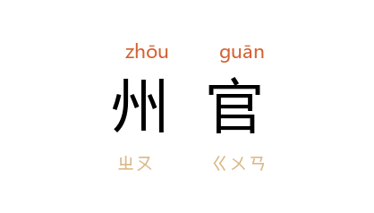 ⒉ 宋至清朝时,一州的最高行政长官,称为「州官」。