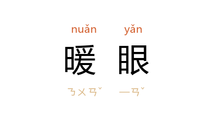 引唐 杜甫 《与严二郎奉礼别》诗:“别君谁暖眼,将老病缠身。”《西游补》第三回:“只是可怜 孙行者,下界西方路上又恨他,上界又怨他,佛祖处又有人送风, 观音 见佛祖怪他,他决不敢暖眼。”