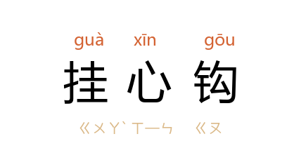 引《白雪遗音·马头调·连环扣》:“解不开的连环扣,蜜里调油;放不下的掛心钩,常在心头。”李文元 《婚事》:“闺女是娘的挂心钩。”