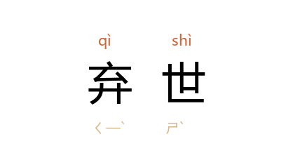 ⒈ 离开人世。也作「去世」、「逝世」。