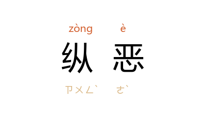 引《后汉书·荀悦传》:“赏不劝谓之止善,罚不惩谓之纵恶。”鲁迅 《坟·论“费厄泼赖”应该缓行》:“二是不辨塌台人物又有好有坏,于是视同一律,结果反成为纵恶。”