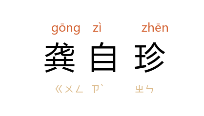 ⒈ (1792—1841) 清思想家、文学家。一名巩祚,字璱人。浙江仁和(今杭州)人。“我劝天公重抖擞,不拘一格降人材”是出自《乙亥杂诗》中的名句。
