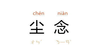 引唐 黄滔 《题山居逸人》诗:“世人谁到此,尘念自应忘。”明 屠隆 《綵毫记·仙官列奏》:“今 唐 太上皇帝,贵妃 杨氏,宿根俱隶仙籍。祇缘尘念,謫在人间。”何其芳 《画梦录·丁令威》:“他在 灵虚山 忽然为怀乡的尘念所扰,腾空化为白鹤。”