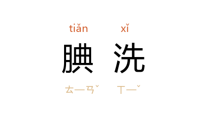 引语出《书·酒诰》:“厥父母庆,自洗腆,致用酒。”清 钱谦益 《定海范氏双节序》:“当 朱 之归于 范 也,上奉皇舅之腆洗,下庀两世之膏火,衣食百须,咸取给十指。”