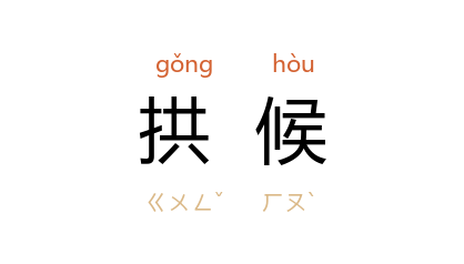 引元 施惠 《幽闺记·请偕伉俪》:“回去禀復老爷,扫门拱候。”明 李贽 《与李惟清》:“大承顾不敢不拱候,利见大人也。”《西游记》第五一回:“请 大圣 早去早来,我等只在此拱候。”清 孔尚任 《桃花扇·劫宝》:“愚兄在此拱候多时了。”