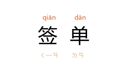 ⒈ 购物、用餐等消费后,不付现款,在单据上签署姓名,店方日后结账。