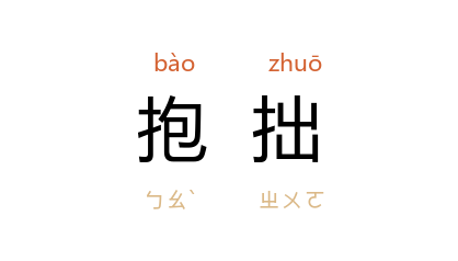 引《古尊宿语录》:“云峯 悦禪师 语録《颂古》:‘抱拙 少林 已九年, 赵州 忽长庭前柏,可怜无限守株人,寥寥坐对千峯色。’”元 揭傒斯 《题<渊明抚松图>》诗:“抱拙辞下邑,旷然获所安。”清 宗元豫 《七夕集晓榭》诗:“白头甘抱拙,那望鹊桥迴。”