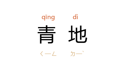 引汉 朱仲 《相贝经》卷十五:“青地緑纹,谓之援贝。”《红楼梦》第三回:“进入堂屋,抬头迎面先见一个赤金九龙青地大匾,匾上写着斗大三个字,是:‘荣禧堂’。”