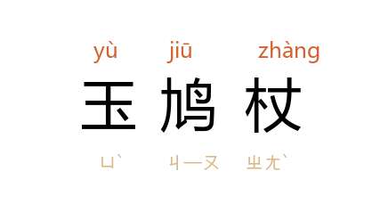 ⒈ 以玉鸠为饰的手杖。据《后汉书·礼仪志》载:年七十者授玉杖。杖端以鸠为饰。鸠为不噎之鸟,欲老人不噎也。