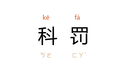 引《后汉书·仇览传》:“其剽轻游恣者,皆役以田桑,严设科罚。”唐 张鷟 《游仙窟》:“断章取意,唯须得情,若不愜当,罪有科罚。”《花城》1981年第6期:“既然违犯了,总不轻恕,只科罚汝三块钱,就算是格外恩典。”