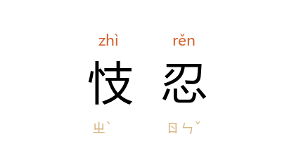 引《新唐书·狄仁杰传》:“仁杰 每以母子天性为言,后虽忮忍,不能无感,故卒復 唐 嗣。”宋 无名氏 《梅妃传》:“明皇 耄而忮忍,至一日杀三子,如轻断螻蚁之命。”明 方孝孺 《畏说》:“仁也,而或贼之以忮忍;义也,而或蔽之以利欲。”