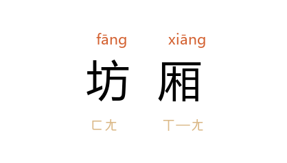 ⒈ 古代城市区划,城中曰坊,近城曰厢,因以“坊厢”泛指市街。