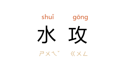 引《战国策·燕策二》:“陆攻则击 河内,水攻则灭 大梁。”《汉书·邹阳传》:“水攻则 章邯 以亡其城,陆击则 荆王 以失其地。”鄢国培 《巴山月》第一章:“诸葛亮 除用火攻外,还擅长水攻。”