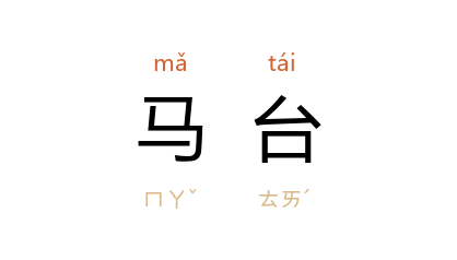 引《西游记》第十八回:“二位长老,你且在马臺上略坐坐,等我进去报主人知道。”《金瓶梅词话》第六八回:“一面牵出大白马来,搭上替子,兜上嚼环,躧着马臺,望上一騸,打了一鞭,那马跑踍跳跃,一直去了。”