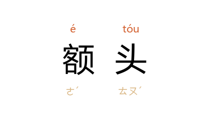 引元 无名氏 《合同文字》第三折:“眼见得打破额头,闪的他进退无路。”周而复 《上海的早晨》第一部七:“她头上几绺乌而发亮的刘海短发从额头披下,显得鸭蛋型的面孔更加红润。”