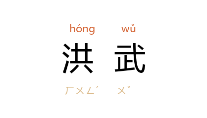 英语Hongwu Emperor, also written Hung-wu Ti, reign name of first Ming emperor Zhu Yuanzhang 朱元璋[Zhu1 Yuan2 zhang1] (1328-1398), reigned 1386-1398, Temple name 明太祖[Ming2 Tai4 zu3]