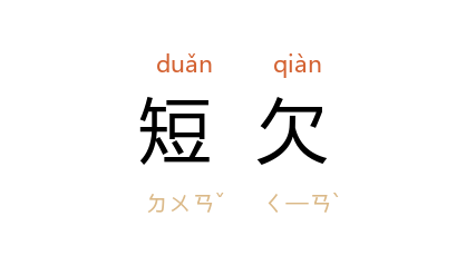 引王汶石 《风雪之夜·春节前后》:“承绪 那人,平素言语短欠,只知低头干活。”柳青 《铜墙铁壁》第二章:“亏损短欠、账目不清,往后怎么和县上结算?”