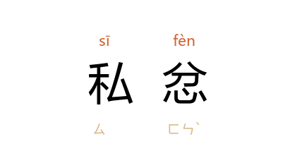 ⒈ 同“私愤”。个人的怨恨。 鲁迅 《且介亭杂文末编·“立此存照”(七)》:引 梦苏 文“倘若以个人的私忿,而杀害外侨,这比较杀害自国人民,罪加一等。”