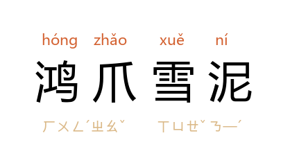 亦作“鸿泥雪爪”。 《筱园诗话》卷四引 清 吴牧驺 《题吴和甫学使纪游图》诗:“使君蒿目意不愉,遣兴忽写卧游图。鸿泥雪爪无处无,一一俱请丹青摹。”