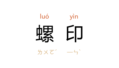 引张天翼 《万仞约》:“这么过了会儿, 大毛 到底听了 萧老官 的劝。他像另外打了个什么个主意似的,脸色渐渐平静下来,在嘴上抹一抹鼻血,于是拿大拇指蘸蘸墨,在纸上印了个螺印。”