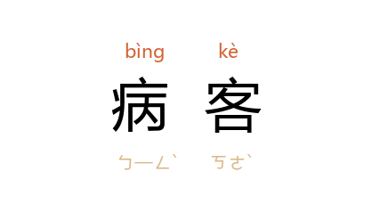 引唐 杜甫 《寄高适》诗:“楚 隔乾坤远,难招病客魂。”唐 白居易 《答元八宗简同游曲江后明日见赠》诗:“南山 好颜色,病客有心情。”宋 苏轼 《和子由送春》:“酒阑病客惟思睡,蜜熟黄蜂亦懒飞。”