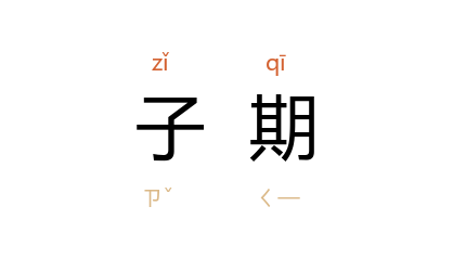 ⒈ 即 锺子期。春秋 时 楚 人,精于音律,与 伯牙 友善。 伯牙 鼓琴,志在高山流水, 子期 听而知之。 子期 死, 伯牙 绝弦破琴,终身不复鼓琴。见《吕氏春秋·本味》。参见“伯牙”。