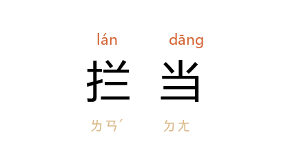 引《五侯宴·第四折》:「阿妈两次三番则是拦当,不知为何不要你孩儿说。」《千里独行·第一折》:「我若打听的俺哥哥兄弟信息,我便寻去,可不许你拦当。」