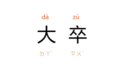 引《国语·楚语上》:“榭不过讲军实,臺不过望氛祥,故榭度於大卒之居,臺度於临观之高。”韦昭 注:“大卒,王士卒也。”《史记·周本纪》:“武王 使 师尚父 与百夫致师,以大卒驰 帝紂 师。”张守节 正义:“大卒,谓戎车三百五十乘,士卒二万六千二百五十人,有虎賁三千人。”