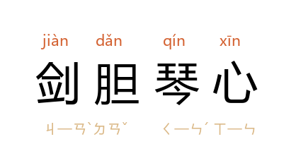 ⒈ 后以“剑胆琴心”比喻刚柔相济,任侠儒雅。