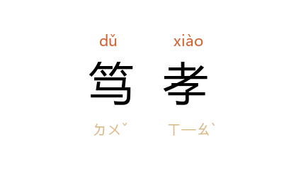 引《韩诗外传》卷九:“是以君子入则篤孝,出则友贤,何为其无孝子之名。”《后汉书·蔡邕传》:“邕 性篤孝,母常滞病三年, 邕 自非寒暑节变,未尝解襟带,不寝寐者七旬。”《新唐书·崔沔传》:“纯谨无二言,事亲篤孝。”宋 张师正 《括异志·黄遵》:“事母篤孝,凡得画直未尝私畜,供甘旨外,悉归於母。”