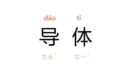 ⒈ 可传导电或热的物体。如金属、镕融电解质或电解质溶液等。相对于绝缘体而言。