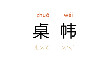 ⒈ 亦称“桌帷”。亦称“桌围”。围在桌子边的装饰物,多以布或绸缎做成。