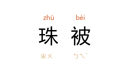 引《楚辞·招魂》:“翡翠珠被,烂齐光些。”南朝 梁 萧子范 《望秋月》诗:“入帐华珠被,斜筵照寳瑟。”唐 李暇 《碧玉歌》:“珠被玳瑁床,感郎情意深。”宋 钱惟演 《明皇》诗:“枉是金鸡亲便坐,更抛珠被掩方床。”