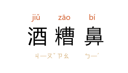 引《儒林外史》第三一回:“一个通红的酒糟鼻,一部大白鬍鬚。”