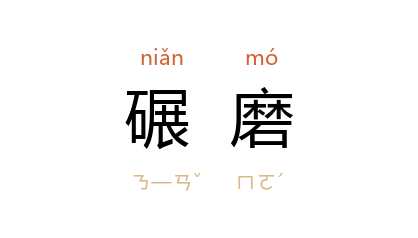 ⒊ 碾碎;碾成粉。