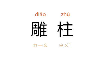 引《吕氏春秋·过理》:“雕柱而桔诸侯,不适也。”高诱 注:“雕画高柱,施桔槔於其端,举诸侯而上下之,故曰不适。”南朝 梁元帝 《玄览赋》:“玉阶紫闈,雕柱锦墙。”元 杨维桢 《三阁图诗》:“沉檀雕柱闕玉螭,丽华吹笙綵云里。”