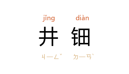 ⒈ 指以金银珠玉贝等镶嵌的井上围栏。唐聚敛之臣王鉷奢侈无度,第宅不计其数,且“以宝钿为井干,引泉激溜,号'自雨亭'。”事见《新唐书·王鉷传》。