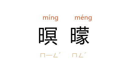 引宋 毛滂 《夜行船·雨夜泊吴江明日过垂虹亭》词:“明日烟江□暝濛,扁舟繫,一行螮蝀。”《清平山堂话本·西湖三塔记》:“薄暮凭栏,渺渺暝曚,数重山色。”